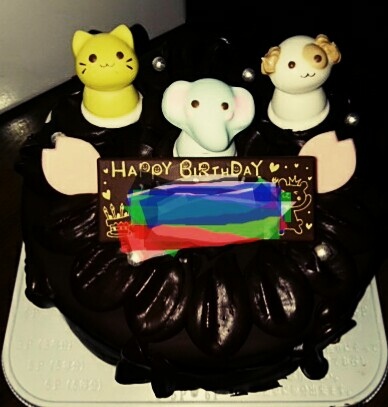 今年の弟(不在)誕生日ホールケーキはチョコレートコーティングのバタークリームでした。